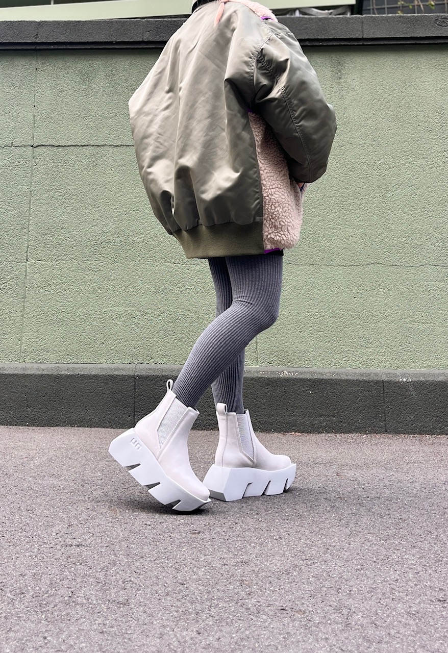 金具のないサイドゴアブーツは長めのボトムスにも◎