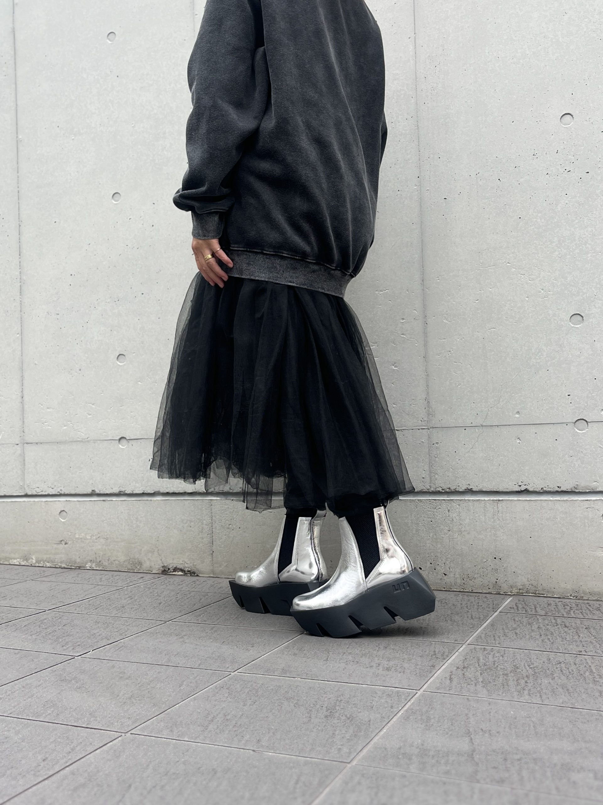 金具のないサイドゴアブーツは長めのボトムスにも◎