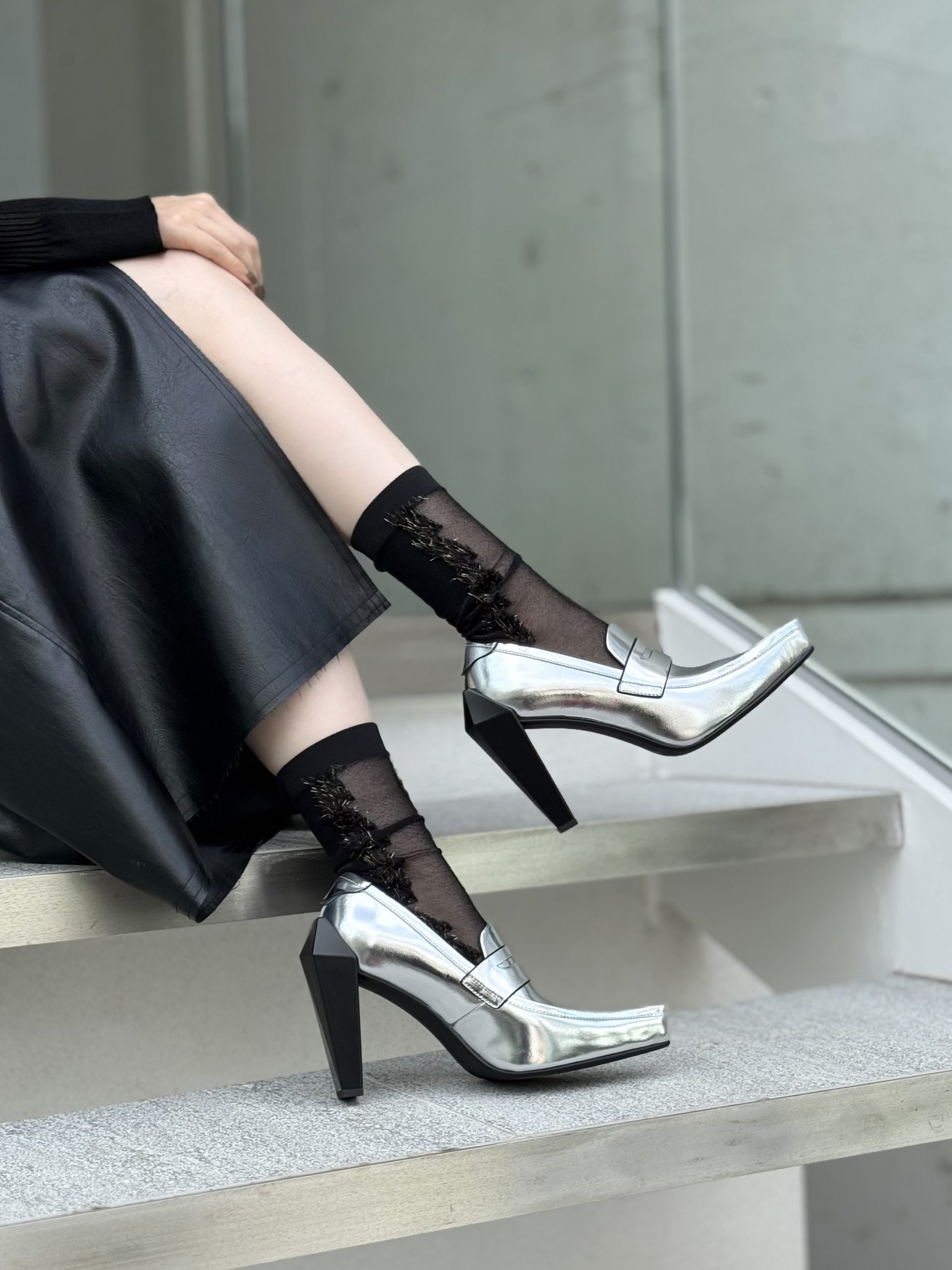 10cmヒールにトレンドのローファーをアッパーデザインに採用。