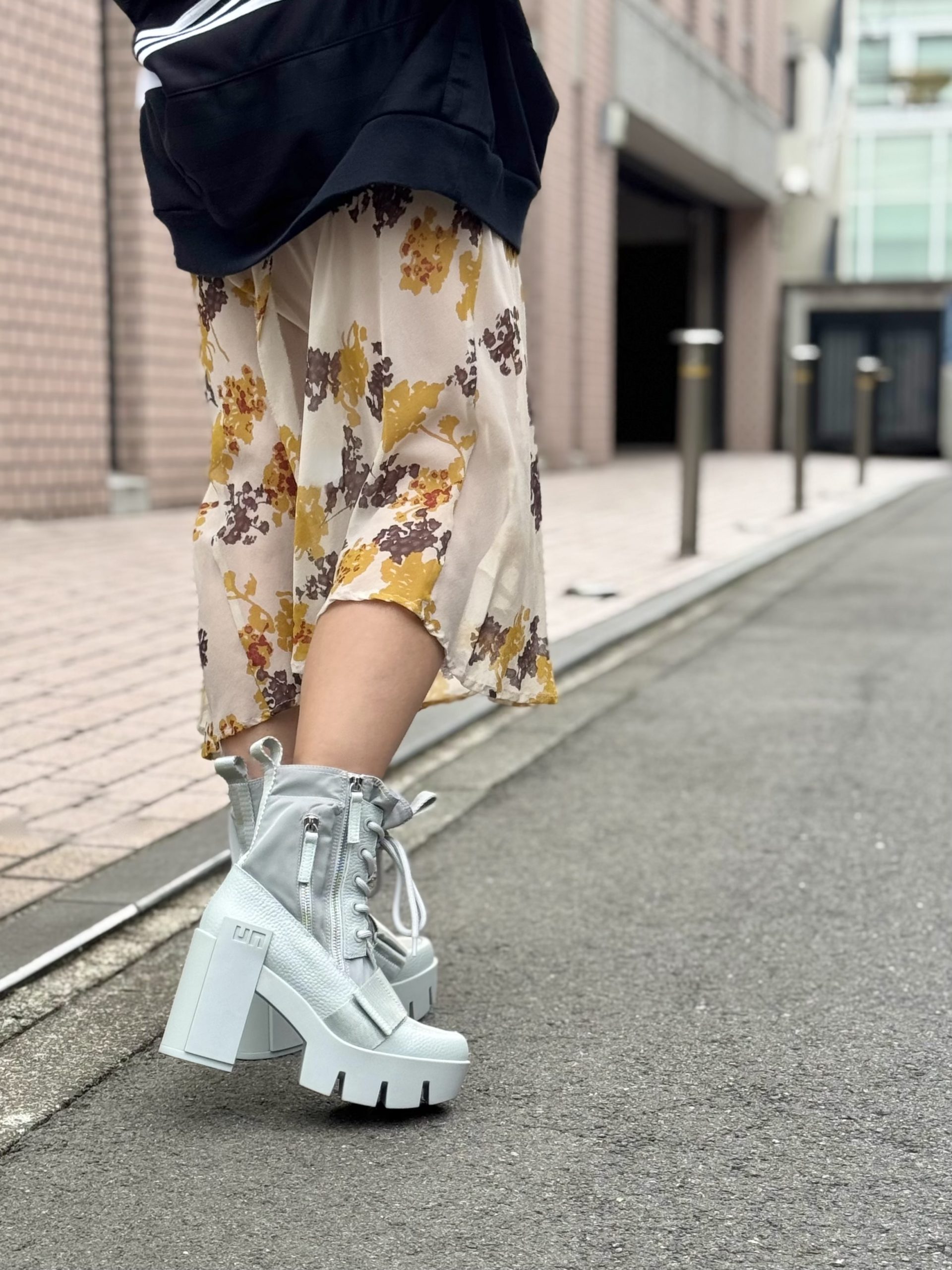 異素材のパーツを組み合わせたUNらしいユニークなブーツ。
