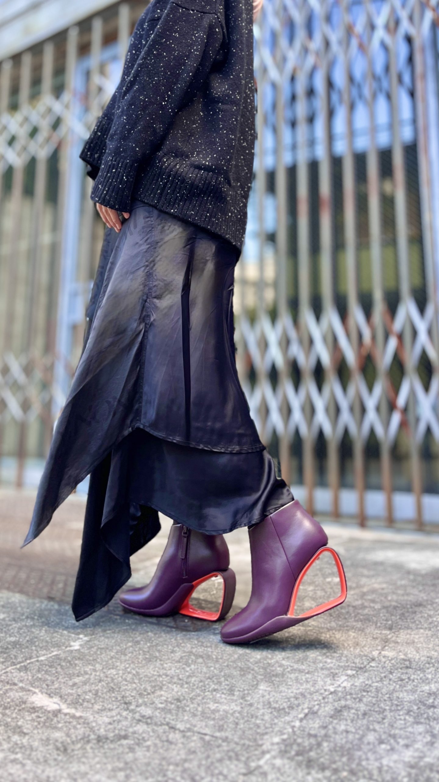 ユナイテッドヌードのシグネチャーであるメビウス・ヒールが特徴のアンクルブーティー。