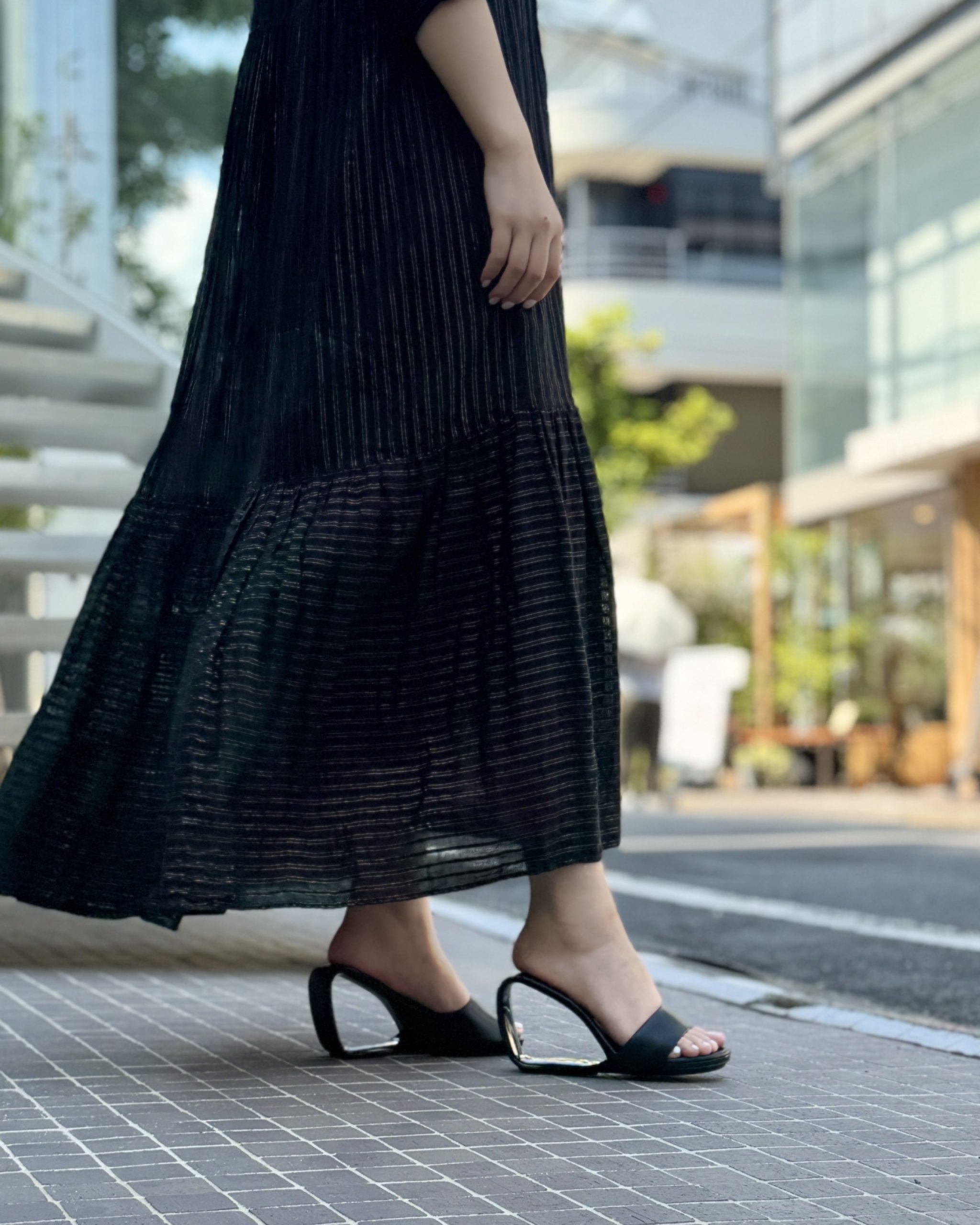 メビウスの輪から発想を得たアーティスティックなヒールは、安定性にも優れた人気モデル。