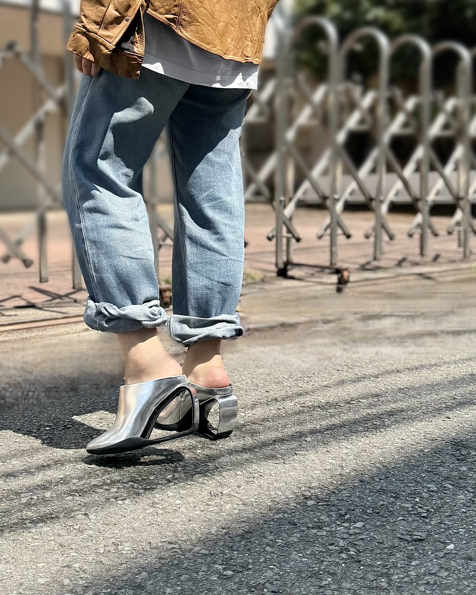 ユナイテッドヌードのシグネチャーであるメビウス・ヒールが特徴のミュールモデル。