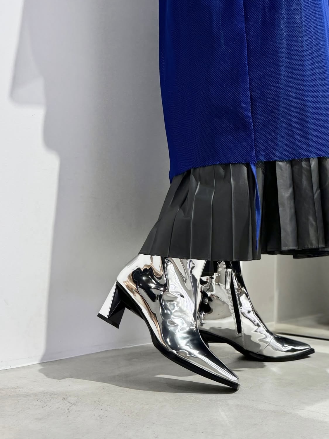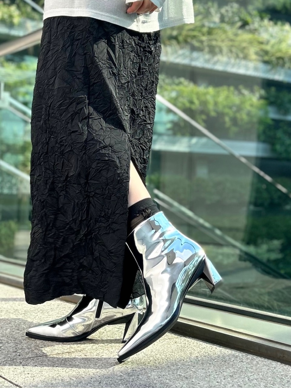 内側のサイドジッパーがあり着脱しやすく、繊細そうでしっかりと安定感のあるテーパードヒールが特徴です。