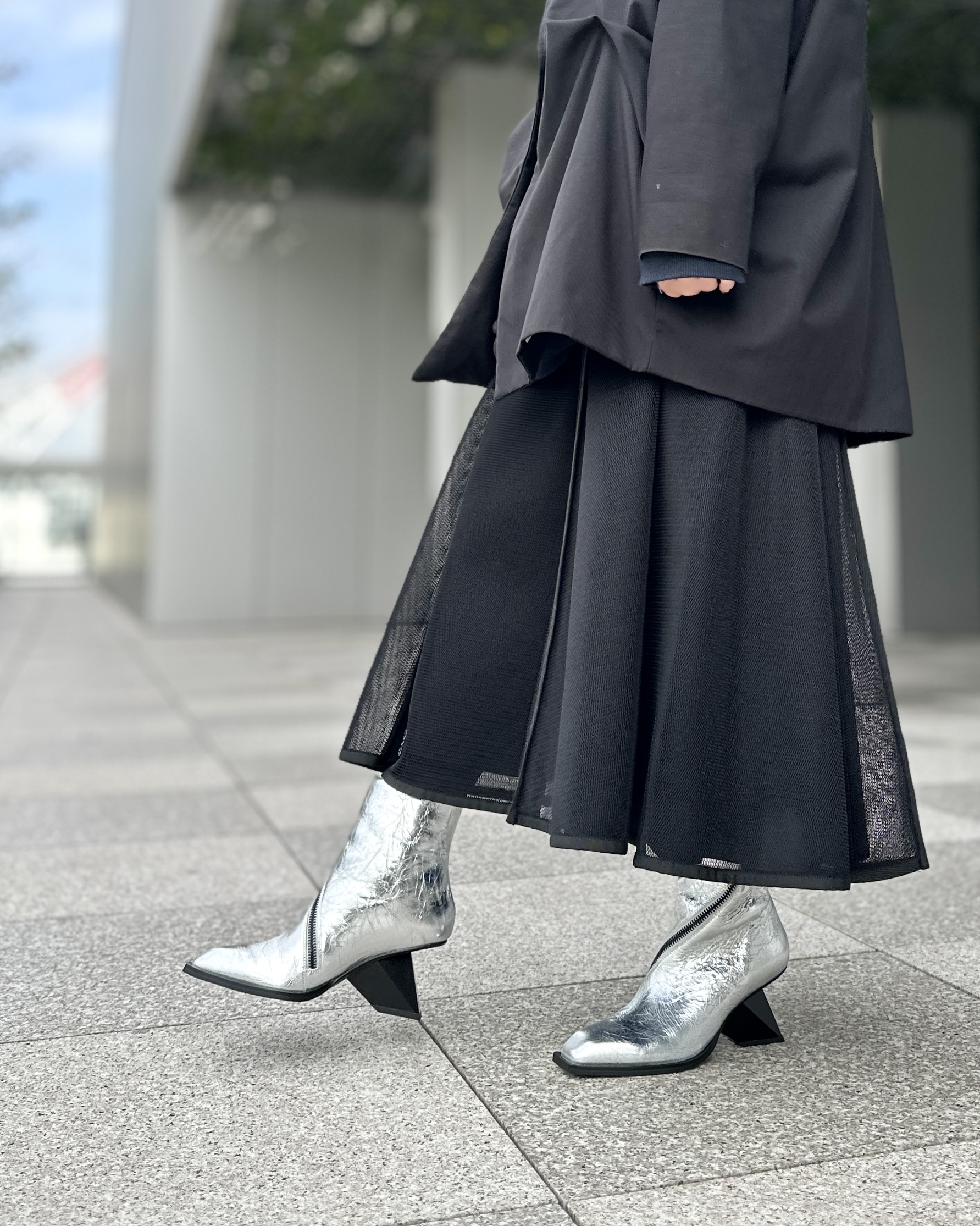 ジップが甲の部分までさがり吐き口が大きく開くため履きやすくなっております。