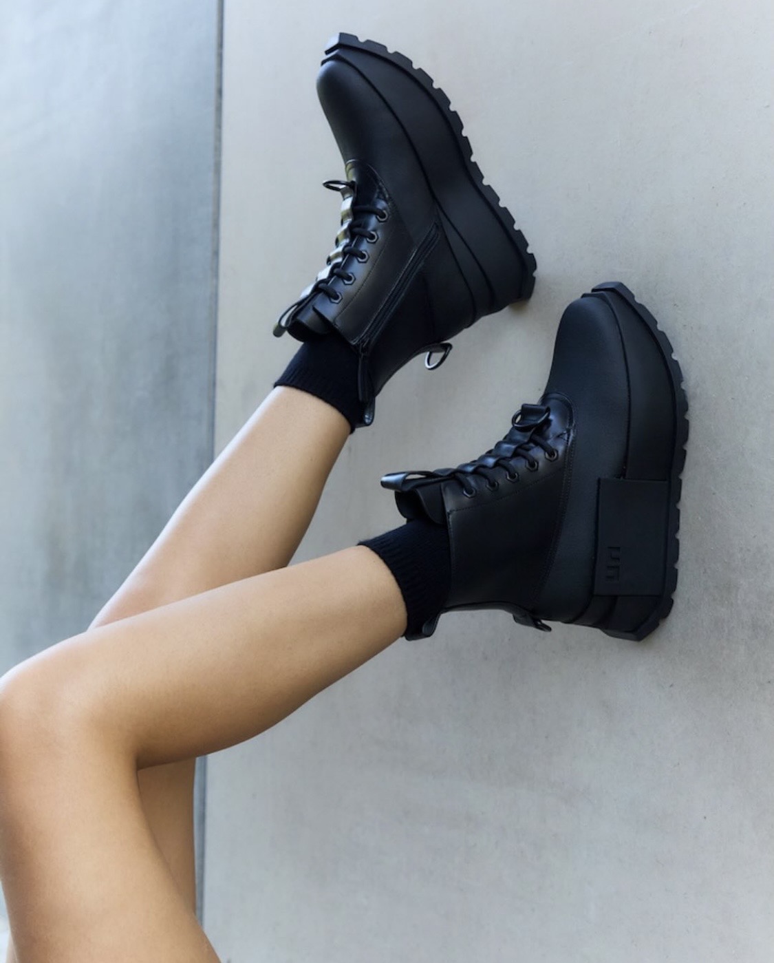 サイドのブロックロゴをアクセントに、サイドジップとレースアップスタイルの両方を備えた機能性も抜群の1足