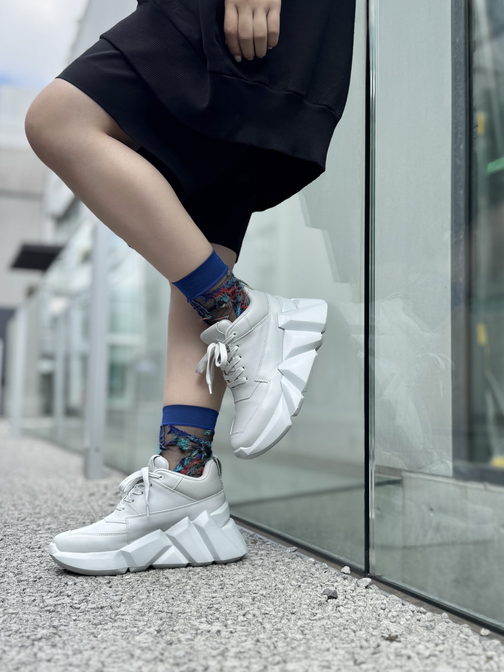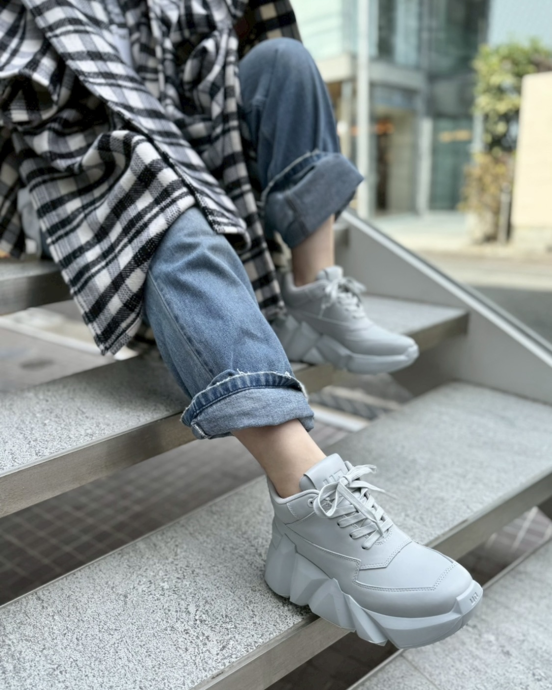 厚さのあるソールと現在のトレンドを取り入れたボリュームスニーカー。