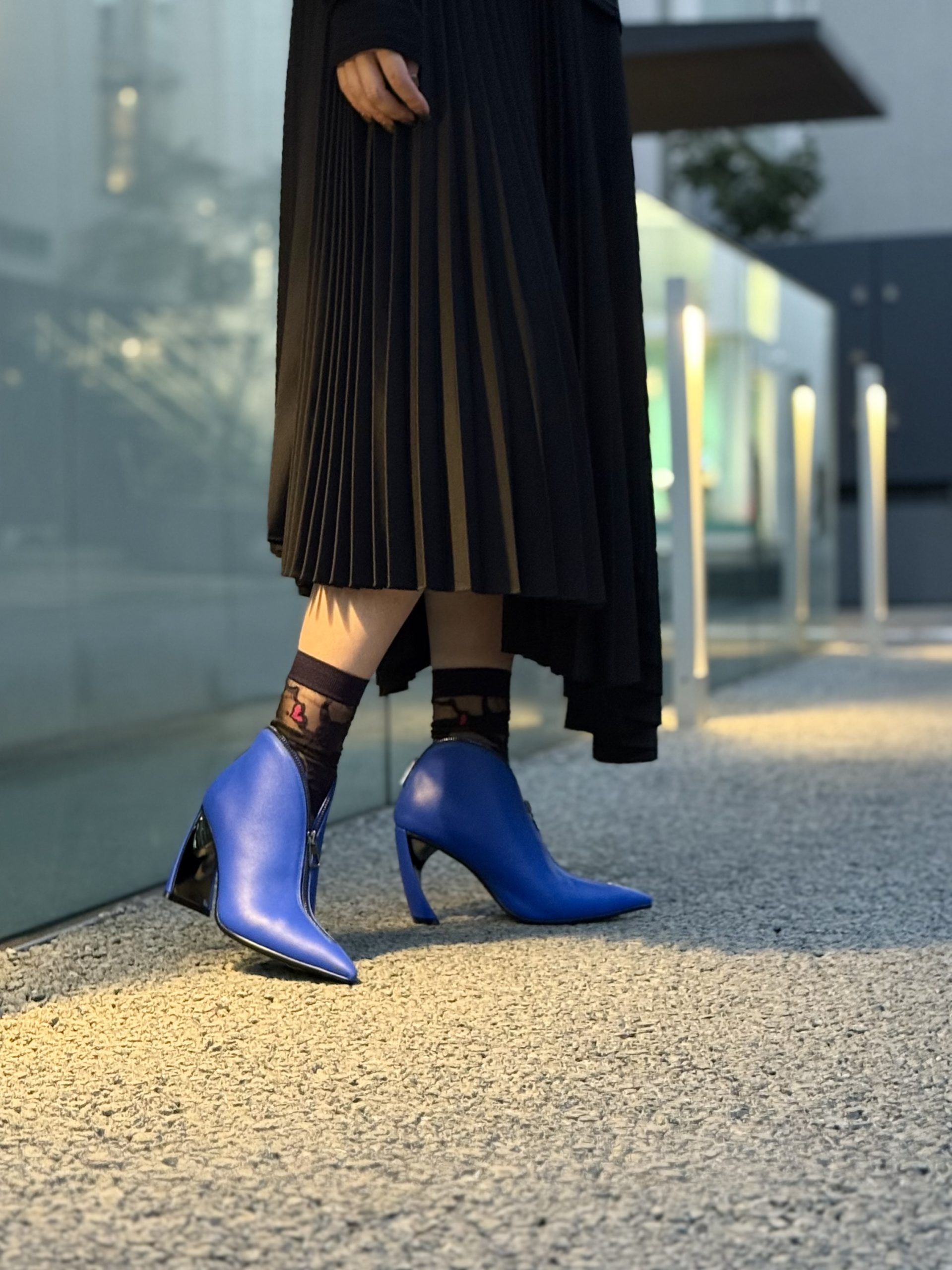 湾曲したヒールはサイドからのシルエットがユニーク。